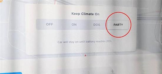 继“哨兵模式”后,特斯拉有可能为旗下车型推出“派对模式”。该模式下,特斯拉的车辆可以保证为空调、电源插座、USB接口、车灯等耗电元器件提供超过 48 小时的持续供电,不过该功能可能仅在电池电量超过 20% 的情况下,才能开启。