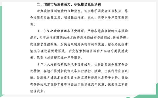 而发改委三部门已经明确指出,严禁各地出台新的汽车限购规定,已实施汽车限购的地方政府应根据城市交通拥堵、污染治理、交通需求管控效果,加快由限制购买转向引导使用。同时会聚焦汽车、家电、消费电子产品领域,进一步巩固产业升级势头,增强市场消费活力,提升消费支撑能力,畅通资源循环利用,促进形成强大国内市场,实现产业高质量发展。