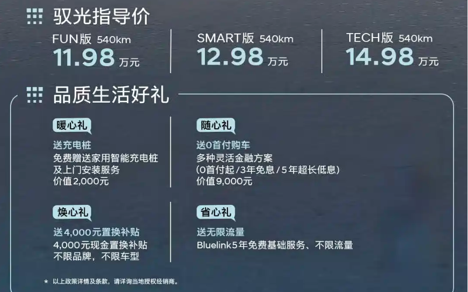 10月29日,北京现代在烟台举办了新能源战略暨eo 羿欧新车上市发布会,新车共推出3款车型,售价区间为11.98-14.98万元。新车是首款基于e-gmp全球电动车专用平台打造的国产车型,定位纯电动紧凑型suv。上市权益如下图: